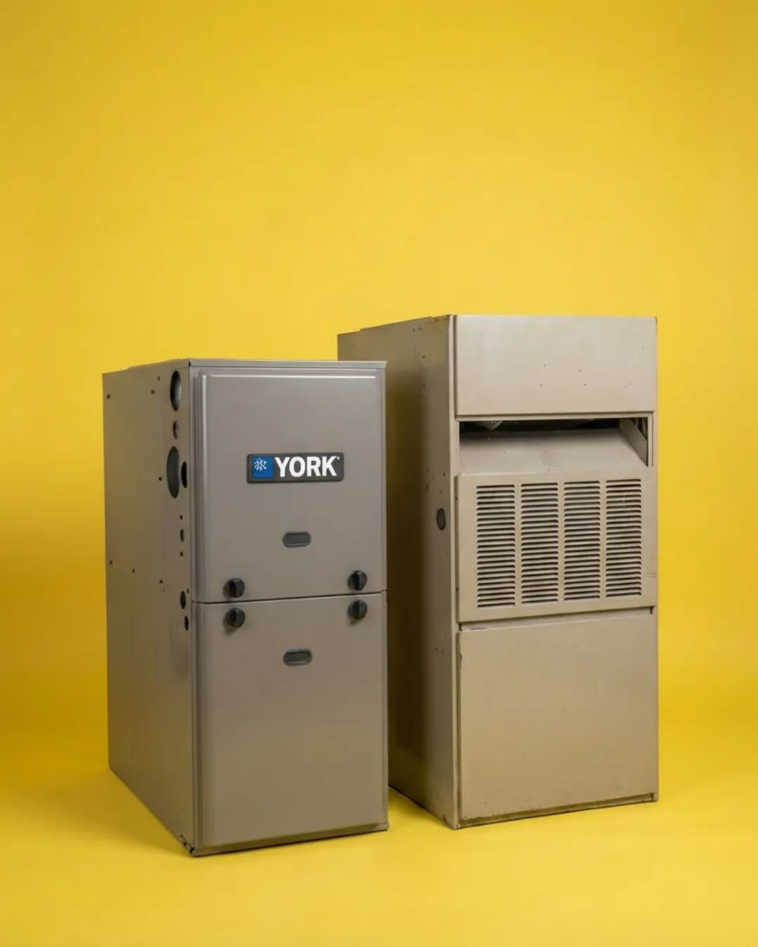 A furnace burns natural gas to generate heat and only provides heating. A heat pump transfers heat from outside air (even in winter) into your home and provides both heating and cooling. Heat pumps are highly efficient and qualify for rebates, but some homeowners prefer dual fuel systems (heat pump + furnace backup) for added reliability during cold snaps.